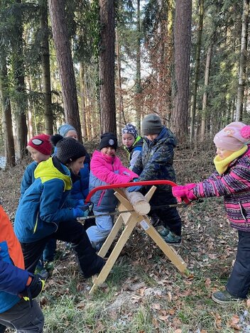 Kinder der Volksschule Puch bei Weiz lernen im Wald