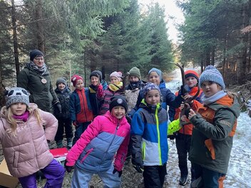 Die Kinder der 2. Klasse der Volksschule Puch verbrachten – warm angezogen - mit Hermine Ponsold von „Walderleben Weiz“ einen abwechslungsreichen Schulvormittag im naheliegenden Wald. Bei verschiedenen Spielen erkundeten sie den Wald und führten einfache Experimente durch, unter anderem zum Thema „Isolierschichten“. So lernten die Schülerinnen und Schüler die Natur und ihre Zusammenhänge auf spannende und anschauliche Weise kennen.