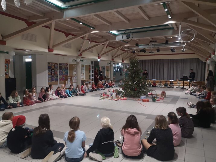 Weihnachtliche Lieder erfüllten das Schulhaus und schufen eine feierliche Atmosphäre, die sowohl Kinder als auch Lehrkräfte sichtbar genossen. Der Zusammenhalt und die Freude am gemeinsamen Musizieren standen dabei im Mittelpunkt.