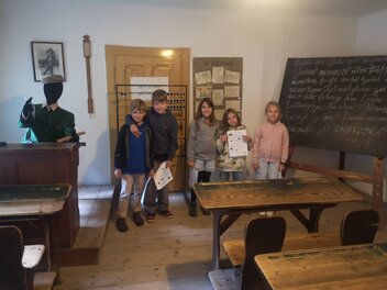 Am 16. September unternahmen die 3. und 4. Klasse der Volksschule Puch einen lehrreichen Ausflug auf das Alpl, um das Leben und Wirken von Peter Rosegger näher kennenzulernen. Mit dem Bus ging es zur Waldschule, die der berühmte steirische Dichter einst mit Spendengeldern für die Kinder der Waldbauern errichten ließ. Heute ist sie ein Museum, das spannende Einblicke in den früheren Schulalltag bietet. Bei einem abwechslungsreichen Quiz konnten die Kinder ihr Wissen testen und erkundeten dabei das Schulzimmer mit Original-Ausstattung aus 1902, das Roseggerzimmer sowie die Schulwerkstätte. Anschließend wanderten sie zum nahegelegenen Geburtshaus Roseggers, wo sie an einer interessanten Führung teilnahmen. Mit vielen Eindrücken kehrten sie schließlich zurück – ein Vormittag, der Geschichte lebendig machte.